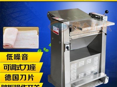 全自动去猪肉皮的机器还有一个非常幽默的名字叫做“猪扒皮”,他是一款电动猪肉扒皮机,是自动割猪肉皮的一款机器,他可以把整版猪肉上的猪皮剔除下来,切割的厚薄可以调节,可以控制剔除下来的猪皮厚薄,猪肉皮制品要求猪皮上不能有肥肉就要用这种专业在猪肉去皮机,广泛的用于加工猪肉皮制品。